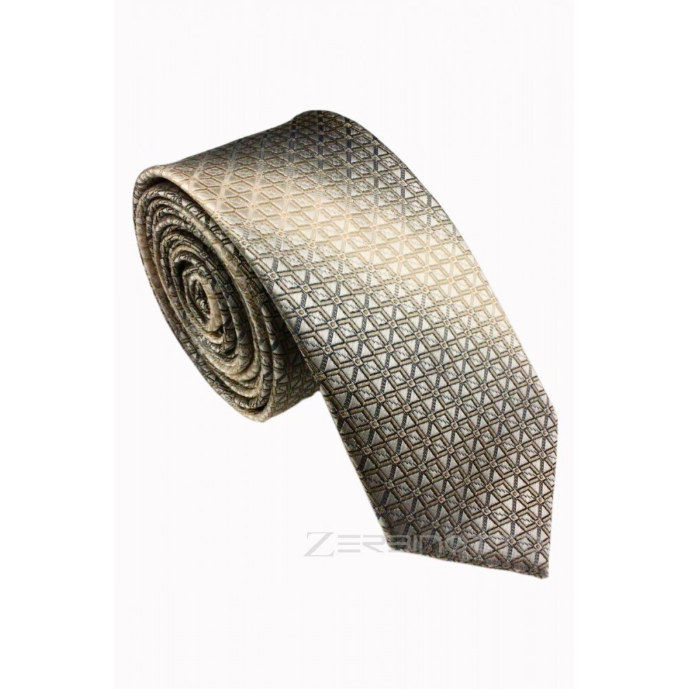 Fashionable and stylish accessory for men - a narrow tie. The model of the narrow tie is made in gray and beige colors with a contrasting tint. Being skilled at choosing and using men's accessories for a shirt, you can change your image beyond recognition. In this version, a male narrow tie can be bought only in our online store. This narrow tieis combined with any classic and youth shirts.