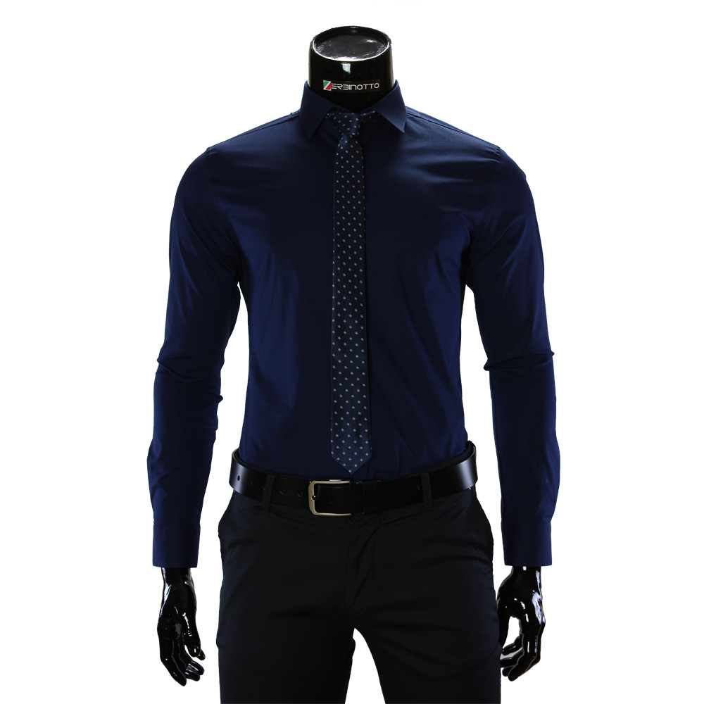 Men's plain shirt with two-sided cuffs. Collar is slanted. Men's shirt is navy with pattern on the collar and on the buttons of the strip. The Giovanni Classic men's collection shirt makes your style irresistible. Cotton makes the shirt pleasant to the body. The shirt is combined with jeans and trousers. Perfect for everyday style. The color of the jacket under the shirt can be chosen in accordance with your wishes and mood. And an ideal shirt is combined with business suits.