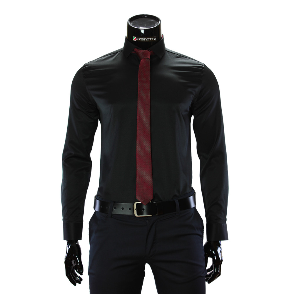 Men's plain shirt with two-sided cuffs. Collar is slanted. Men's shirt is black with pattern on the collar and on the buttons of the strip. The Giovanni Classic men's collection shirt makes your style irresistible. Cotton makes the shirt pleasant to the body. The shirt is combined with jeans and trousers. Perfect for everyday style. The color of the jacket under the shirt can be chosen in accordance with your wishes and mood. And an ideal shirt is combined with business suits.