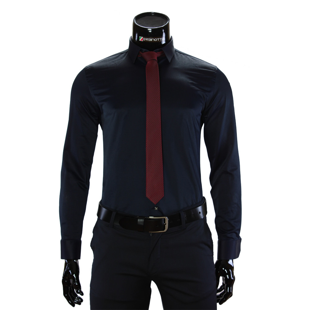 Men's plain shirt with two-sided cuffs. Collar is slanted. Men's shirt is dark blue with pattern on the collar and on the buttons of the strip. The Giovanni Classic men's collection shirt makes your style irresistible. Cotton makes the shirt pleasant to the body. The shirt is combined with jeans and trousers. Perfect for everyday style. The color of the jacket under the shirt can be chosen in accordance with your wishes and mood. And an ideal shirt is combined with business suits.