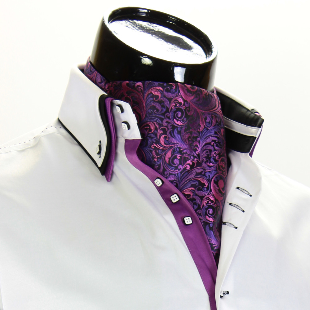 Екстравагантний аксесуар під сорочку для чоловіків – лилова шийна хустка (аскот) чоловіча в візерунок Пейслікольору фуксія з доповненням розписного візерунка колекції Vintage від бренду Zerbinotto. Дана модель чоловічої шийної хустки Аскот представлена як ідеальне доповнення до вашого іміджу, зовнішнього вигляду і вмінню майстерно носити і підкреслювати деталі чоловічої сорочки, а також виділятися серед інших. Звертаємо увагу, що чоловіча шийна краватка аскот - це аксесуар для справжніх цінителів стилю.