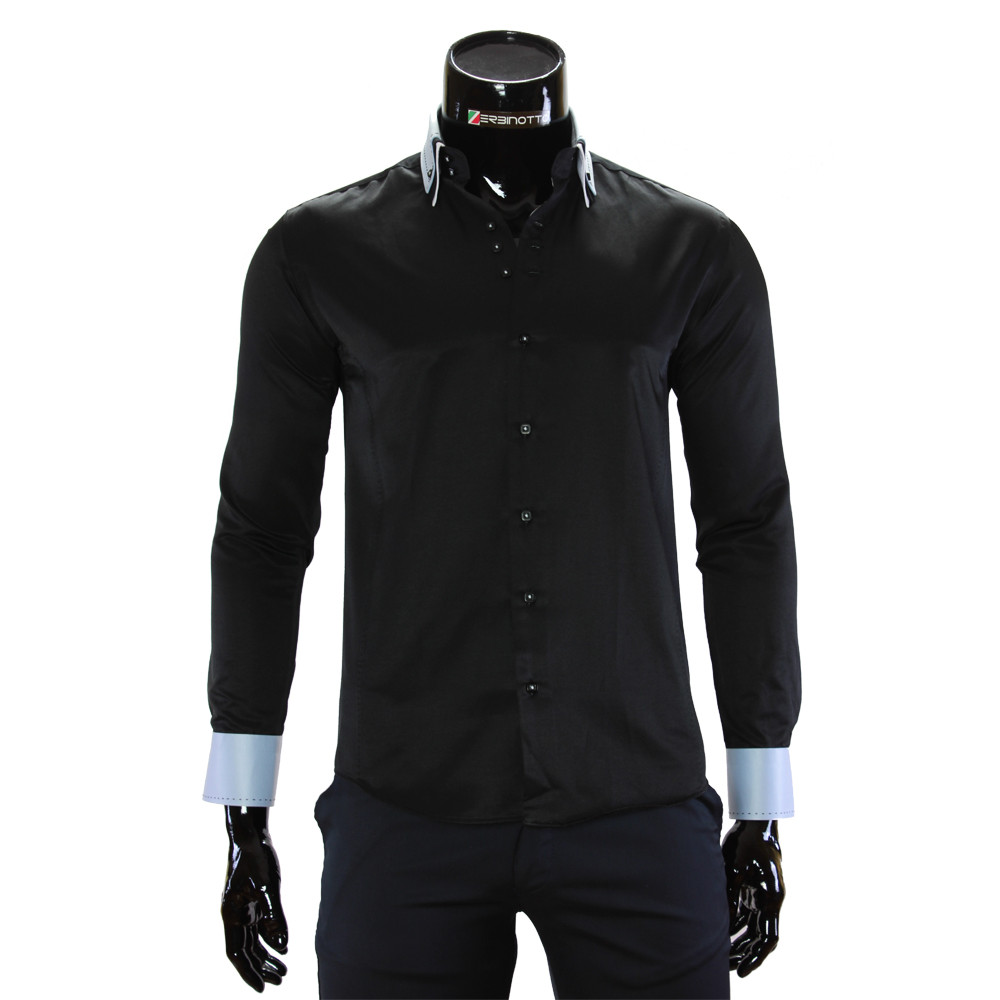 Рубашки мужские Slim Fit (приталенные) несут свою миссию, что бы посещать неофициальные мероприятия, мероприятия романтик или будь то вечеринка, свидание, встреча по поводу праздника или семейный ужин. В приталенных рубашках все чаще и чаще присутствует неординарное исполнение — и как следствие, это двойные или тройные вороты, принтовые очертания на отворотах манжет и воротов, декоративные строчки по туловищу, которые совпадают по цвету с основной тканью, либо, наоборот, создают характерный, но допустимый контраст. Именно эта модель рубашки коллекции Mario представлена в темно черном цвете с тройным воротом и сплошной, однотонной отделкой по манжетам. Особенностью сие чуда это, конечно же, ткань в ее шелковисто сатиновом исполнении. А ее квадратные пуговицы в слиянии с основным цветом придадут строгости стилю.